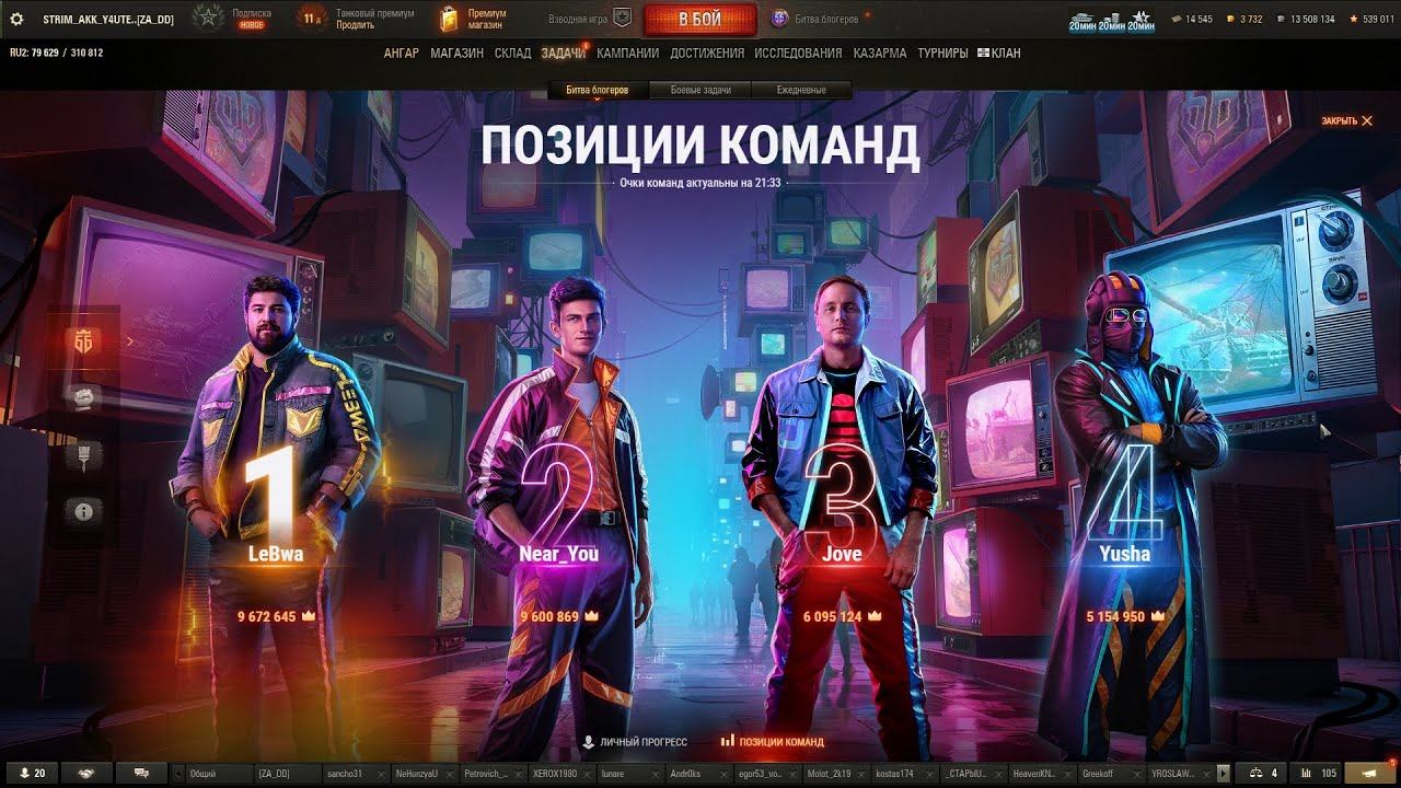 Здраствуйте всем , Друзья! ДНЕВНИК БИТВЫ БЛОГЕРОВ ✦ ПОБЕДЯТ ТОЧНО ВСЕ ✦ СТИХОПЛЁТСКИЙ Принять участие в поддержке канал можно тут : https://www.donationalerts.com/r/y4utel_wot У кого не заработает Алёртс – можете поучаствовать напрямую на карту Альфа : 2200152361997581 Трансляции на TROVO : https://trovo.live/Y4utel_WOT Трансляции на BOOSTY : https://boosty.to/y4utel_wot Трансляция на ВК Плей : https://vkplay.live/y4utel_wot_ РУТУБ : https://rutube.ru/channel/23890938/ Видео на ЯндексДзен : https://zen.yandex.ru/id/6238bcc0d5819570a0ada6c7 Видео в ВК : https://vk.com/video/@id192905357 Общайтесь с нами в группе в контакте : https://vk.com/y4utel_wot Делайте Добро! Присоединяйтесь для общения : 1. ВК(контакт) - сюда https://vk.com/y4utel_wot 2. Дискорд - https://discord.gg/HE5XvyN49G 3. Тимспик - TS-VIP.ru 4. Скайп - https://join.skype.com/invite/eHl5b2BTgbAc 5. В личное сообщение в танках - ник Sergeo22, Y4utel_wot 6. Электронная почта Y4utel_Wot@mail.ru 7. Телеграм канал : Y4utel_wot Если нравятся мои видео или стримы , можете помочь каналу: https://www.donationalerts.com/r/y4utel_wot http://www.donationalerts.com/c/y4utel_wot https://new.donatepay.ru/@1319671 Альфа Банк - 2200152361997581 https://yoomoney.ru/to/410016470457535 Яндекс Деньги - 410016470457535 ГАЗПРОмбанк - 2200010159733495 Пожелания/ заявки отправляйте на электронную почту : Y4utel_wot@mail.ru Теги для продвижения : #Y4utelWot#танки#учительвот