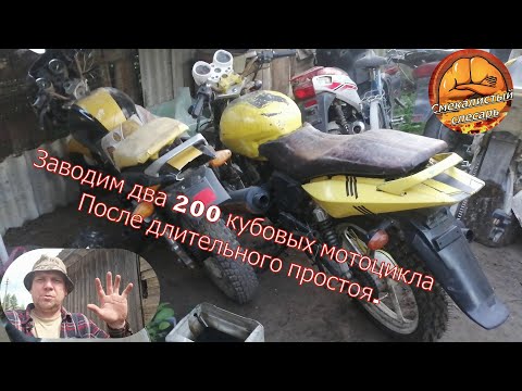 Заводим два 200 кубовых мотоцикла, после длительного простоя.