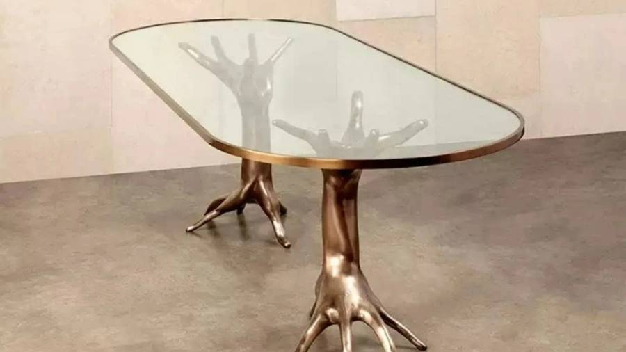 Журнальный столик оригинальной конструкции, в нижней части которого расположены две опоры, напоминающие руки. Столешница изготовлена из прочного стекла. Код товара: 39063-32 https://lalume.ru/index.php?route=product/product&path=20&product_id=39063