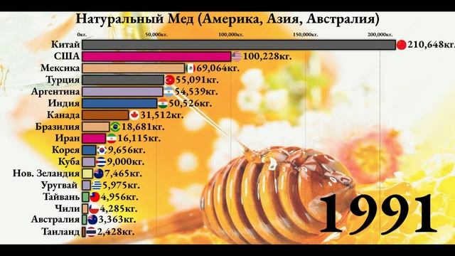 Производство меда 1961-2021 год (Америка, Азия, Австралия)[ИНФОГРАФИКА]. Кто же лидер?