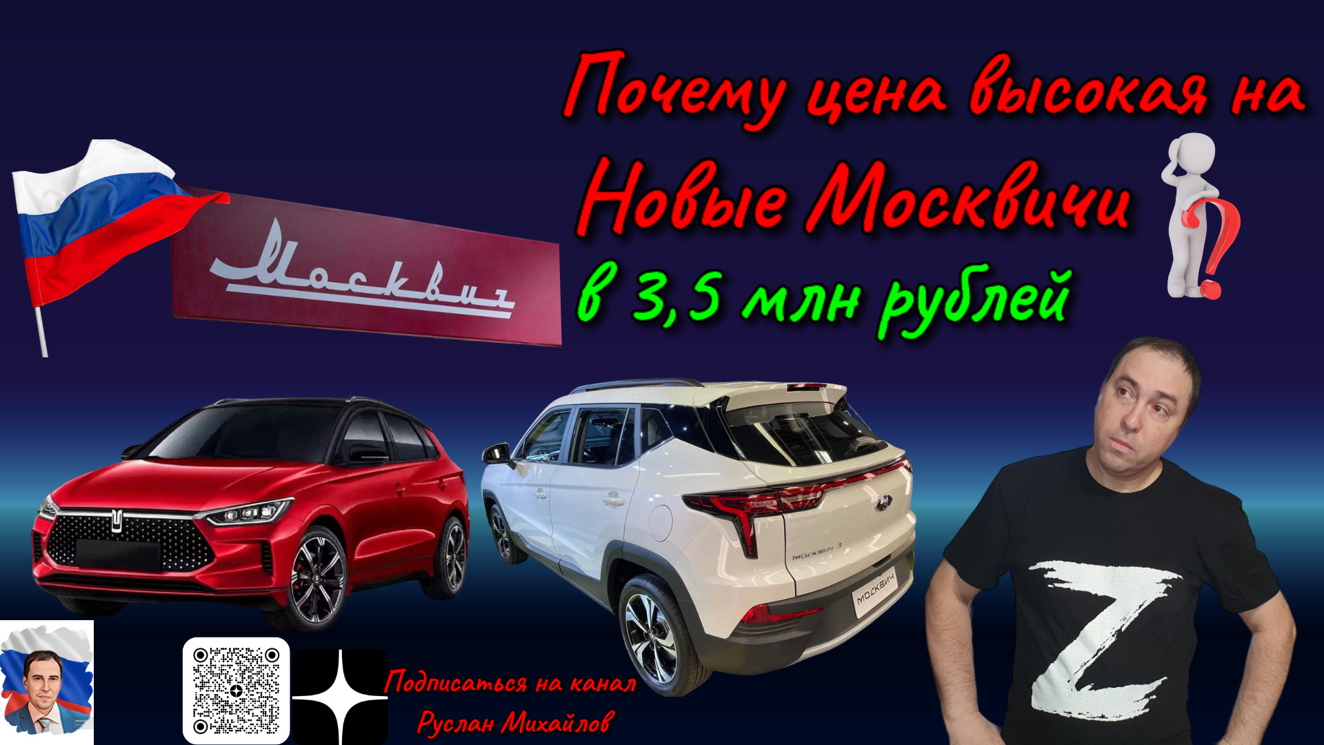 Руслан Михайлов политобозреватель сказал свое личное мнение. Почему цена высокая на Новые Москвичи? Концерн "Москвич" планирует выпустить седан и кроссовер в 2023 году. В модельный ряд "Москвича" входят только бензиновый кроссовер «Москвич 3» и его электрическая версия «Москвич 3е». Первый оснащается 1,5-литровым 150-сильным турбомотором, работающим в паре с шестиступенчатой механической коробкой передач (от 1 970 000 рублей) или вариатором (от 2 035 000 рублей). Электромобиль который стоит ровно 3 500 000 рублей, комплектуется 193-сильным электромотором и аккумулятором емкостью 65,7 киловатт-часа, дающим запас хода до 410 км по циклу WLTP. ссылка на источник avtonovostidnya.ru/...7-moskvich Поддержка канала ЮMoney 4100117815002119 карта сбер банк 2202202311864023 подписывайтесь на мои каналы на вк vk.com/id558285967 группа на вк vk.com/club202827331 мой телеграмм канал https://t.me/ruslnmikhailov мой дзен канал https://dzen.ru/id/631c117b86c1d4523a950b41