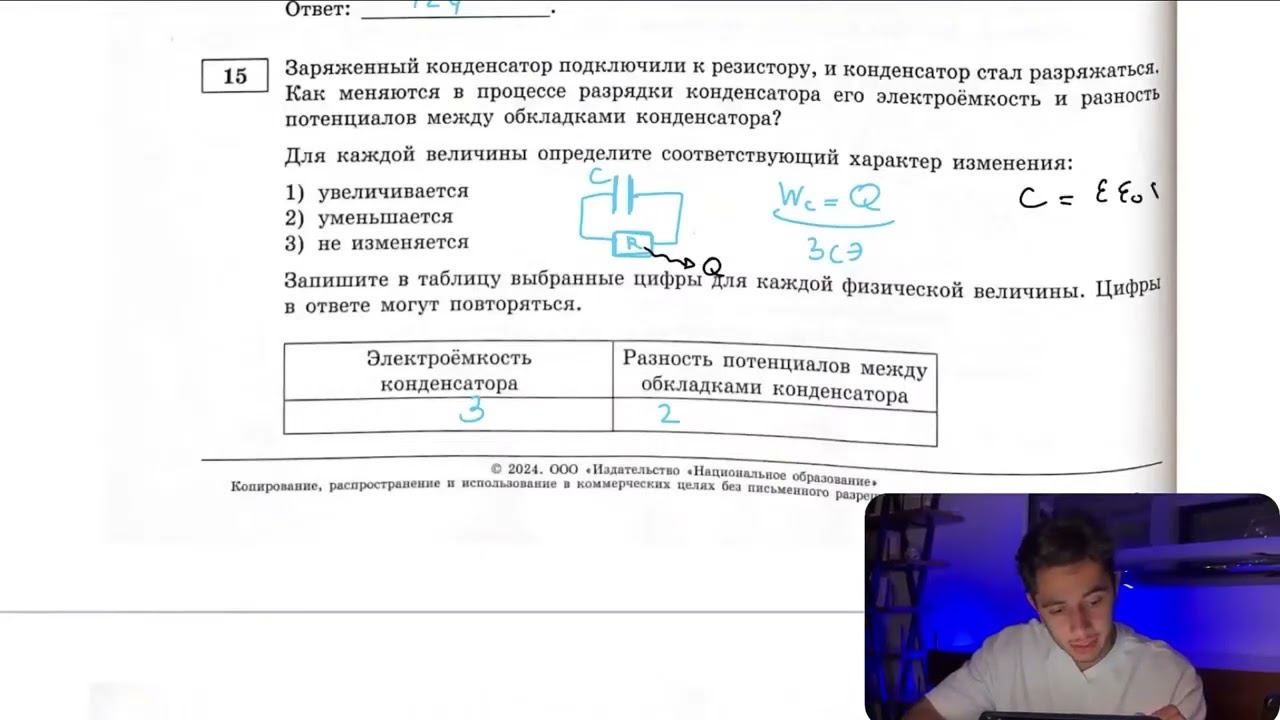 Заряженный конденсатор подключили к резистору, и конденсатор стал разряжаться. Как меняются - №