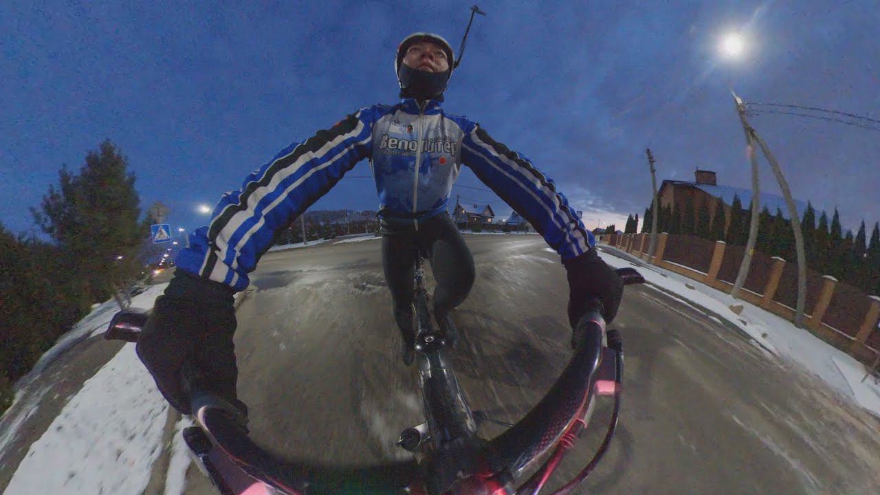Опасно! Не повторять! Трюк выполнен профессионалом. По льду на велосипеде. VR 360 Брест, Беларусь.
