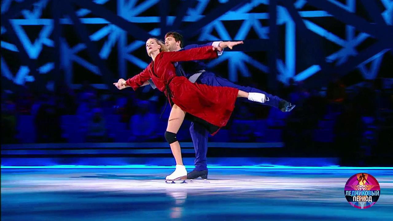 На льду – актер Вольфганг Черни и чемпионка мира Оксана Домнина. Они танцуют под народную песню «Когда молод был» в исполнении Ярослава Дронова.