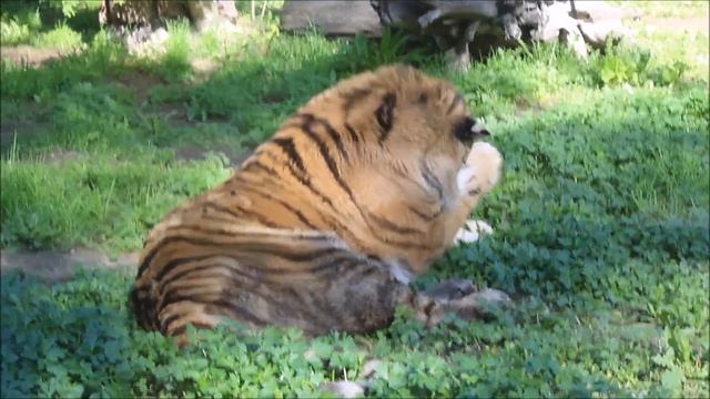 В новосибирском зоопарке этот подвид появился в 1960 году. С тех пор здесь родилось 53 тигрёнка. Самец Максимус был рожден в Московском зоопарке в 2005 году. Макс любит играть, как котёнок. Главные его игрушки — канистры и пластиковые бочки. Амурская тигрица Лапа на год младше Максимуса. Её привезли в Новосибирск в 2007 году с Дальнего Востока после того, как она попала в капкан браконьеров и травмировала лапу. Сейчас у неё с лапой всё в порядке. Первые малыши у пары появились в 2008 году, с тех пор они еще не раз становились родителями прелестных котят в полоску.