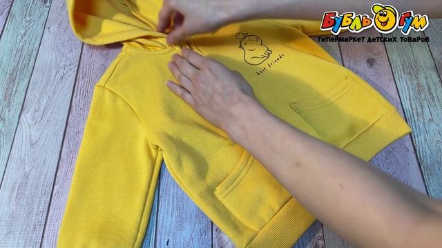 328687 Толстовка Lanson Kids утепленная с капюшоном на молнии и капибарой желтая
