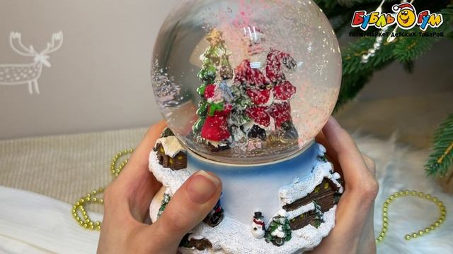 331013 Шар снежный Дед Мороза с ребенком и елкой музыкальный стекло D10см