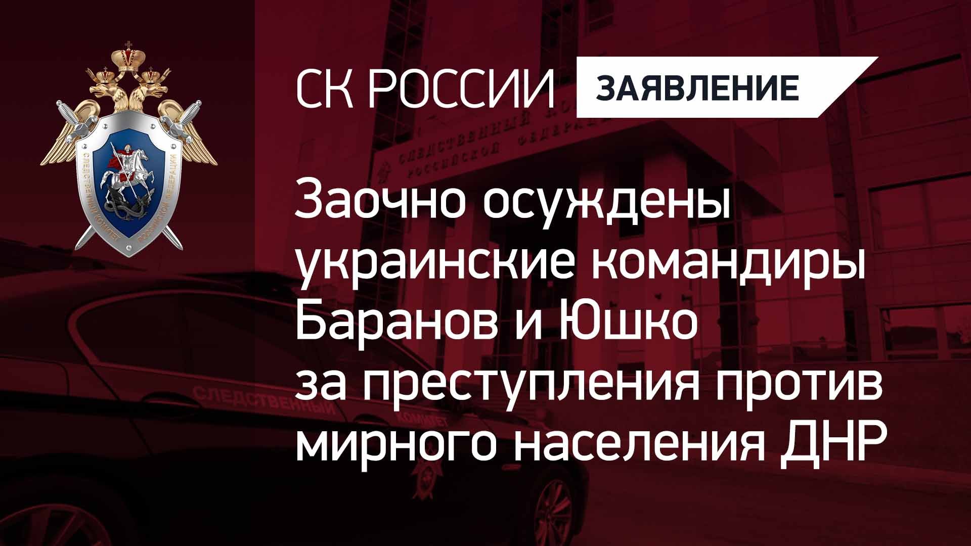 Доказательства, собранные Следственным комитетом России, признаны судом достаточными для вынесения заочного приговора командиру 44-й отдельной артиллерийской бригады ВСУ бригадному генералу Сергею Баранову и командиру 1 дивизиона указанной бригады подполковнику Виктору Юшко. Они признаны виновными в жестоком обращении с гражданским населением, применении в вооруженном конфликте запрещенных средств и методов, убийствах и покушении на убийство двух и более лиц, в том числе малолетнего, совершенных общеопасным способом, группой лиц по предварительному сговору, по мотивам политической, идеологической ненависти, а также в умышленном повреждении чужого имущества, повлекшем причинение значительного ущерба (ч. 1 ст. 356, пп. «а», «в», «е», «ж», «л» ч. 2 ст. 105, ч. 3 ст. 30, пп. «а», «в», «е», «ж», «л» ч. 2 ст. 105, ч. 2 ст. 167 УК РФ). Следствием и судом установлено, что Баранов совместно с Юшко и иными представителями вышестоящего военного руководства Украины отдали незаконный приказ подчиненным о прицельном обстреле 26 мая 2015 года из РЗСО «Град» и других артиллерийских систем и минометов, имеющих высокие поражающие свойства неизбирательного действия, объектов гражданской инфраструктуры в городе Горловке. В результате проведенного обстрела погибли не участвующие в вооруженном конфликте мирный мужчина и девочка 11 лет. Жительница Горловки, ее 2-летний сын и новорожденная дочь были ранены. Также существенно разрушены домовладение и хозяйственные постройки потерпевшей. Баранов и Юшко понимали, что указанные объекты не являлись военными целями, там находились мирные жители. Действуя в нарушение международных договоров и соглашений, обвиняемые отдавали незаконный приказ, чтобы воспрепятствовать населению ДНР и ЛНР определить свой политический статус и осуществлять свое экономическое, социальное и культурное развитие в пределах границ республик на правах суверенных государств. Приговором суда Баранову и Юшко заочно назначено наказание в виде 29 лет лишения свободы каждому. Они объявлены в розыск.