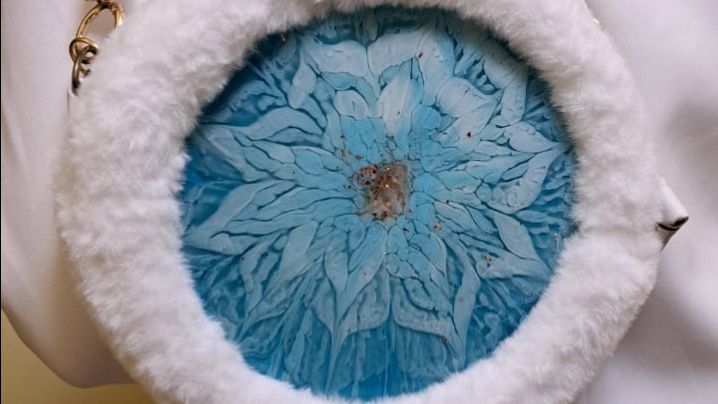 сумка женская белый короткий мех голубая вставка