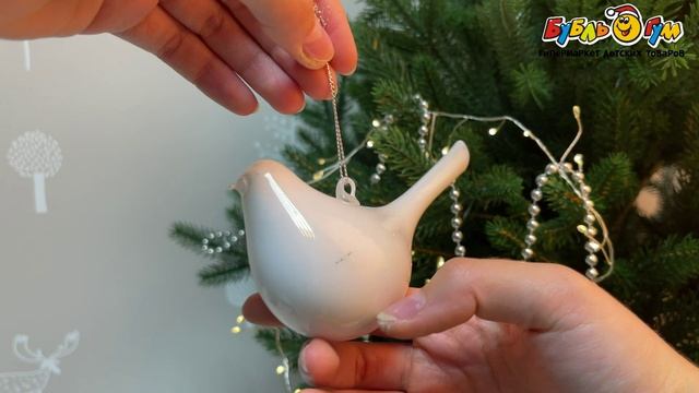 334413 Елочное украшение Птица стеклянное белое 12см