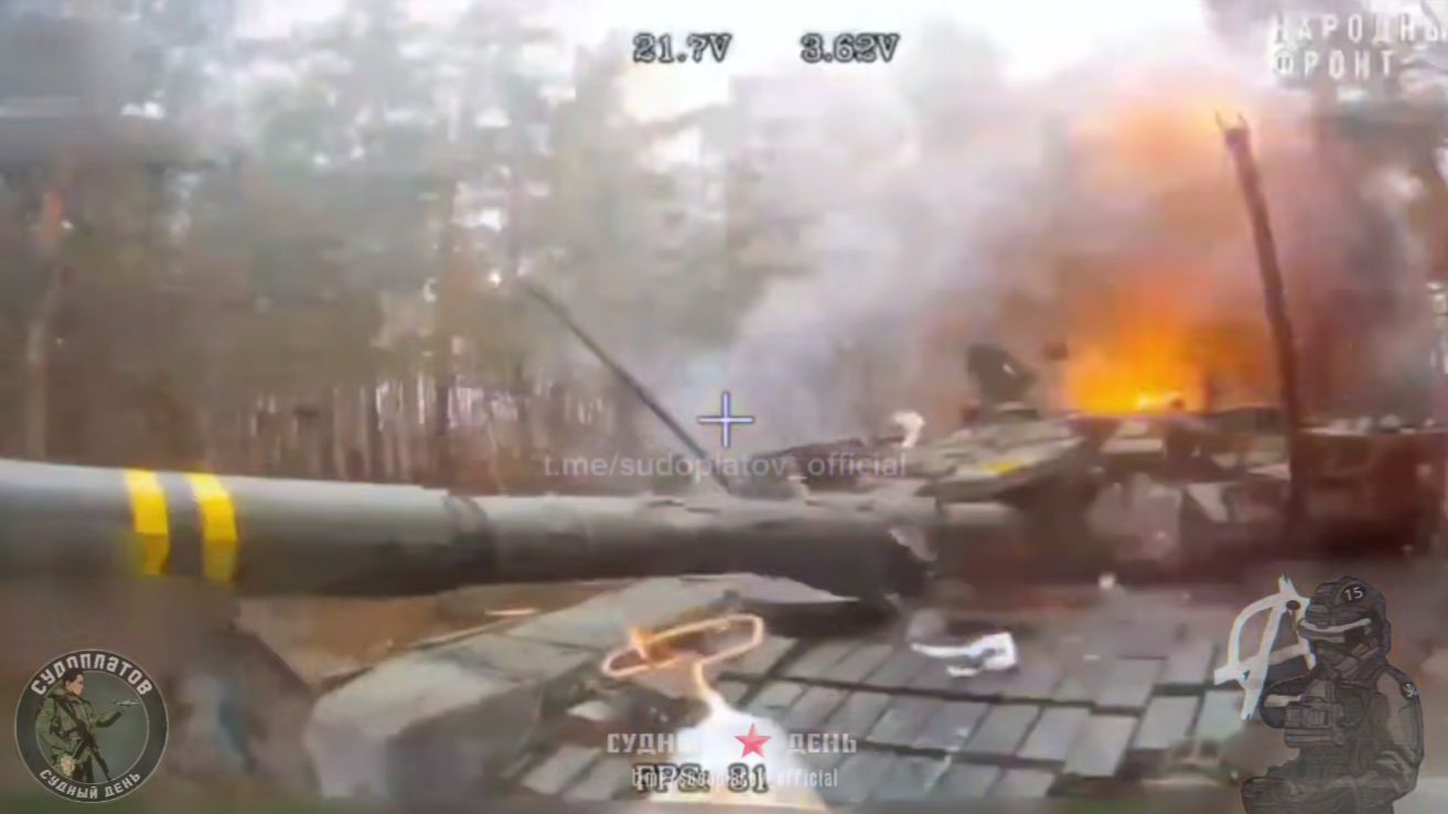 🔴 н.п. «Кучеровка» (Купянское направление) экипаж танка Т-72 ВСУ пытается укрыться в серой мгле🔴