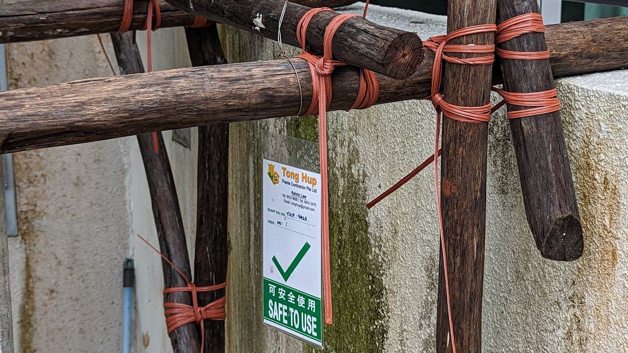 Из палок (без говна). Особенности сингапурского строительства. Леса вокруг дома из веревок и жердей.