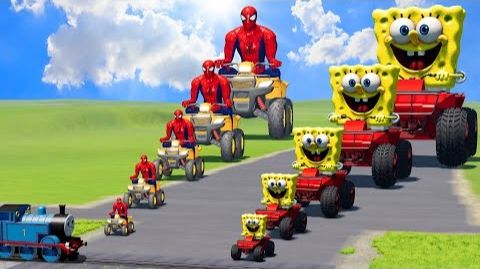 Большой и маленький Человек-паук на квадроцикле против Большого и маленького Губки Боба