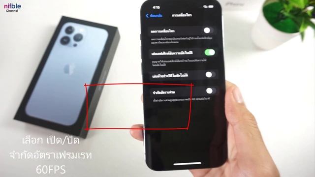 วิธีเปิด ปิด ใช้งาน จอแสดงผล ProMotion ของ iPhone 13 Pro / 13 Pro MAX อัตราการรีเฟรช 120Hz จำกัดอัตราเฟรม 60fps เปิดแล้ว ทัชสกรีนลื่นขึ้น สำหรับการเล่นเกม สายเกม Rov pubg FreeFire แต่แบตลดไว ถ้าเปิด 5G ด้วย เมื่อคุณปิดสวิตช์ อัตราการรีเฟรชของจอแสดงผลจะเปลี่ยนกลับเป็น 60Hz ขอบคุณผู้ชมทุกท่าน สำหรับวิดีโอที่คุณได้รับชมจากช่อง Nifble Channel ถ้าชอบ! ก็อย่าลืมกดไลค์และ Subscribe เป็นกำลังใจให้ด้วยนะครับ