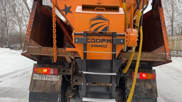 Пескоразбрасывающее оборудование МОС-7 в кузов самосвала КамАЗ-65115 от Московского завода