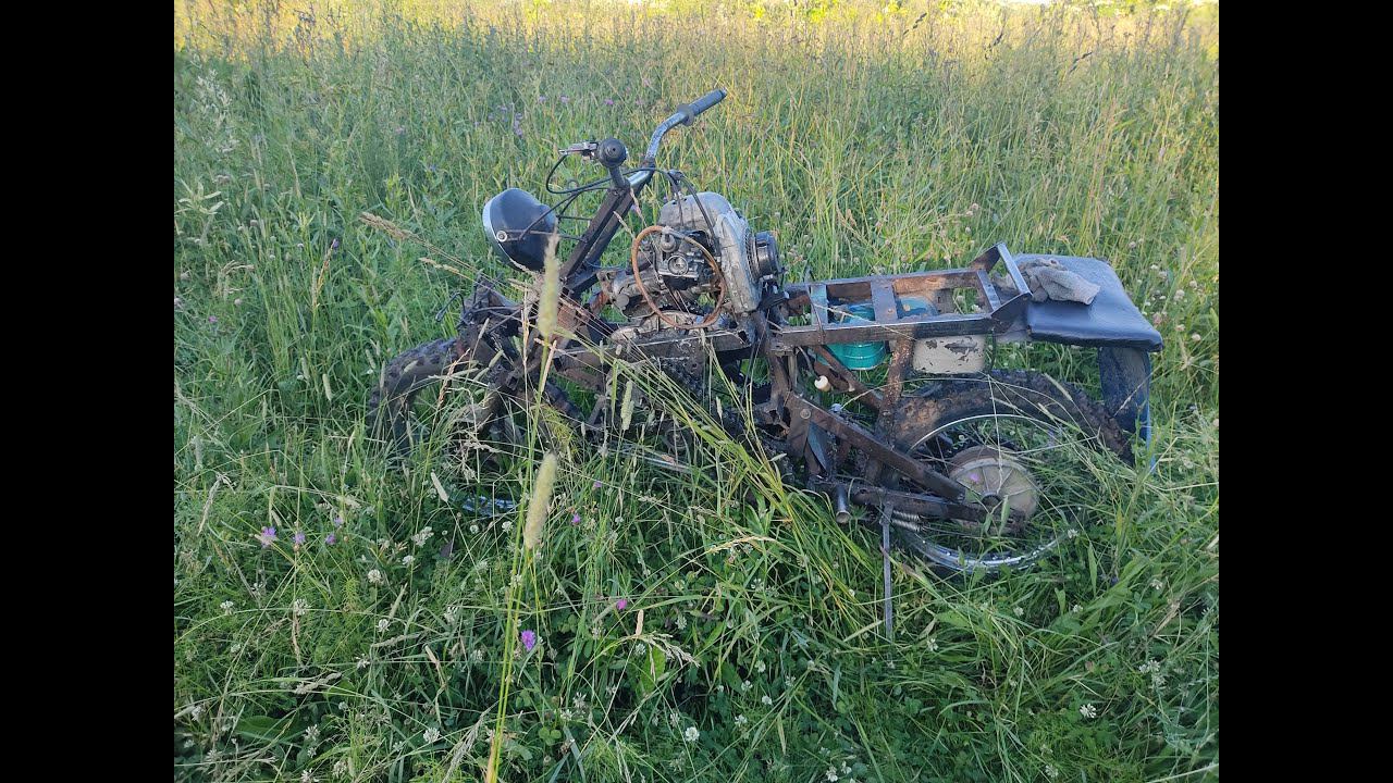 Полноприводный мотоцикл с двигателем от бензопилы против крутых горочек