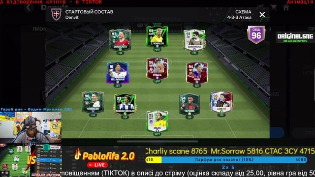 Привет, братуленчики из сообщества ФИФАМОБАЙЛ | FIFAMOBILE ? Сегодня вас ждет оценка составов, игра в равную с подписчиками, апаем чемпиона в равной ... ✔️Для игры и оценки состава ⤵️ NIKNAME IN FIFAMOBILE ➜ ORIGINALSE ?️ ✔️Поддержка автора и его штанов ⤵️ ? ДОНАТ СООБЩЕНИЕ ➜ https://donatello.to/pablofifa ? МОНОБАНК ТУТ ➜ 5375414116636712 ✔️Ценник (без очереди) ⤵️ ? Оценка состава ➜ от 25 ? Сыграть 1на1 равная игра - от 50 ✔️Соцсети ⤵️ ? НАША БАНДА ТИКТОК ➜ https://www.tiktok.com/@pablofifa2.0 ? ТЕЛЕЖКА И ЧАТ ➜ https://t.me/pablofifa2 ? ТВИЧ НА СТАРТЕ ➜ https://www.twitch.tv/pablofifamobile ? ДИСКОРД-КРОССВОРД ➜ https://discord.com/invite/P8Tx56QzDE Стримы также на Тиктоке (основное сообщество) - обязательно подписывайтесь на Тикток ⤵️ ? НАША БАНДА ТИКТОК ➜ https://www.tiktok.com/@pablofifa2.0 Ваши вопросы, которые не дают мне спать ??? ?Давно играешь ⤵️ Dendi ➜ Sega ➜ Nintendo ➜ с 1998года на ПК ➜ Sony ➜ FifaMobile (2019..) ?Какие игры еще играешь онлайн ⤵️ OLD SCHOOL - Counter Strike 1.6 ➜ Cossacks ➜ Star Craft ?Какой OVR твоей команды (покажи команду) ⤵️ Прошу пожаловать в Тикток ?В игру донатил ⤵️ Нет. Ні. No. ?Можешь прокачать мне состав, подарить акк и тд. ⤵️ Это необратимое бедующее и твоя удача ?Какой ПК⤵️ Сейчас в аренде ?Какой телефон ⤵️ IphoneX, Ipad ?Сколько тебе лет ⤵️ 30+ ?Ты откуда ⤵️ Киев ? Спасибо за подписку каждому - обнял ?