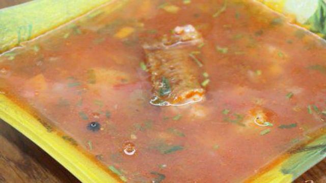 Томатный суп с копчеными куриными крыльями