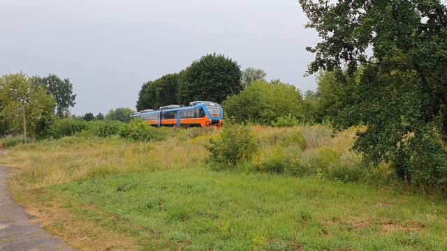 28 июля 2021 года в 15:25 у входного станции Голутвин линия Озёры-Голутвин Московская железная дорога colorful train through the bushes! RA3-022 by route Ozyory-Golutvin arrives at the terminal July 28, 2021 at 15:25 at the entrance station Golutvin Ozyory-Golutvin line Moscowskaya railway