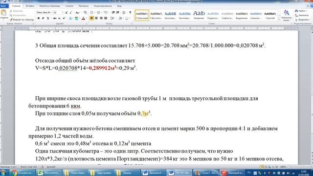 Расчёты материалов для жёлоба