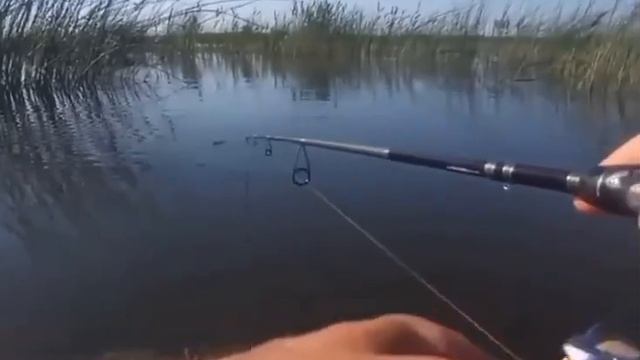 Щука долго преследовала и не могла решится на атаку. Сам рыбак был на момент поклевки в поляризационных очках и видел момент атаки, но на камере этого не видно.