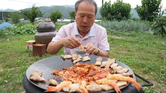 КОРЕЙСКИЙ ПЕНСИОНЕР УЖИНАЕТ НА ДАЧЕ: МУКБАНГ ASMR