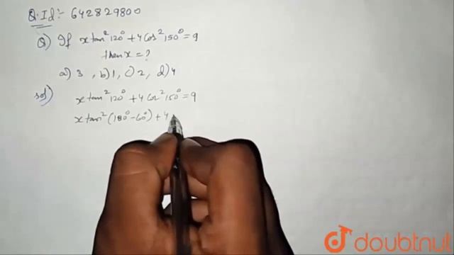 If `xtan^(2) 120^(@) + 4 cos^(2) 150^(@) = 9` then x = |Class 11 MATH | Doubtnut