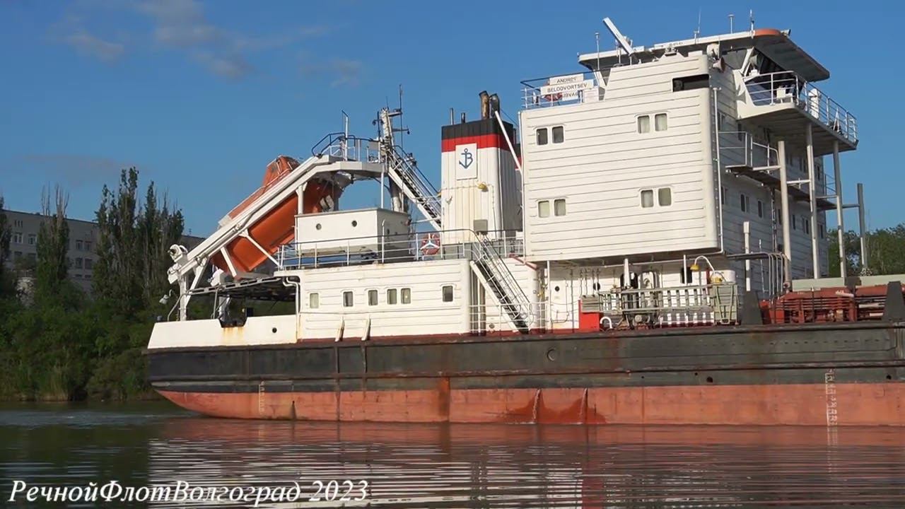Теплоход Андрей Белодворцев, тип Волжский на Волго Донском судоходном канале им Ленина в Волгограде