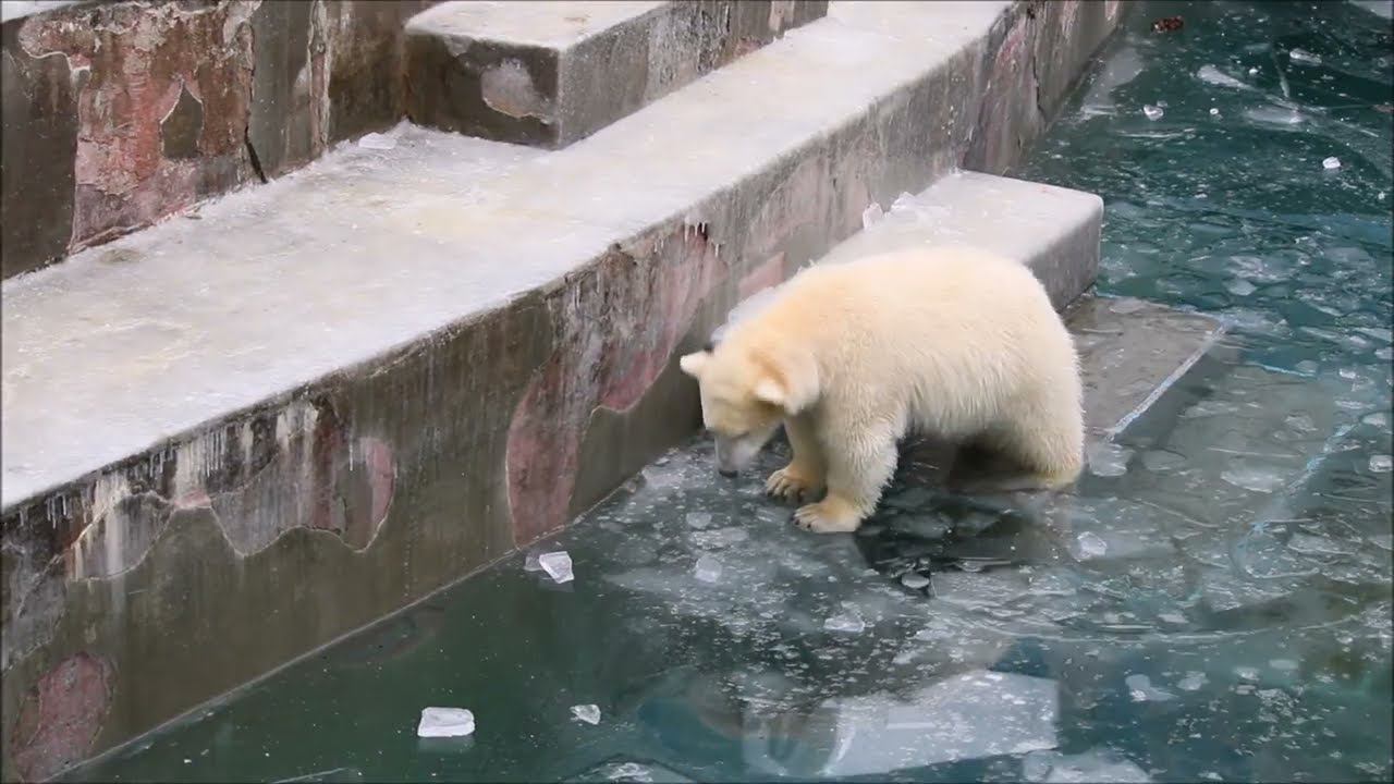 Медвежатам интересно что там подо льдом и они решили нырнуть в воду 23.11.2023