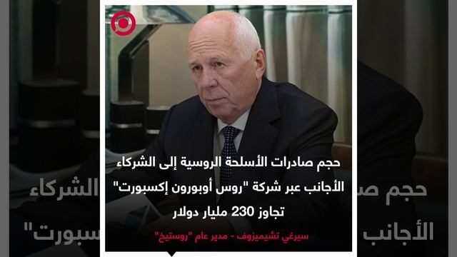 المدير العام لمؤسسة "روستيخ" الحكومية الروسية، سيرغي تشيميزوف، يعلن أن حجم صادرات الأسلحة الروسية إلى الشركاء الأجانب عبر شركة "روس أوبورون إكسبورت" تجاوز 230 مليار دولار