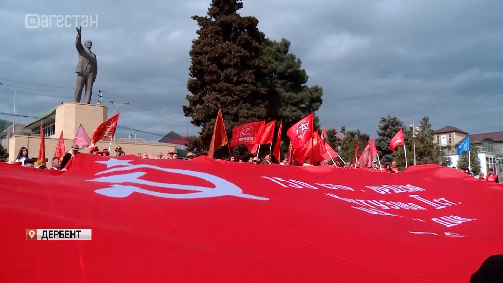 «Наша великая победа». Коммунистическая партия провела патриотическую акцию в Дербенте. На главной площади развернули Знамя Победы, возложили цветы к мемориалу у вечного огня. Эстафету передали в соседние регионы.