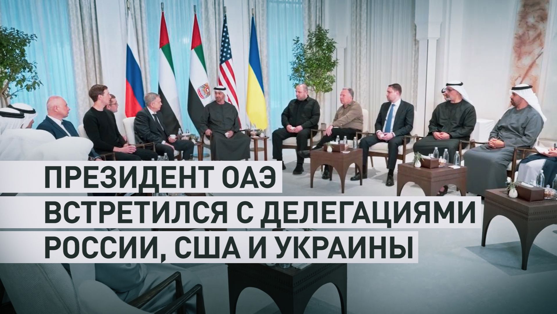 Агентство Ruptly показало первые кадры со встречи президента ОАЭ с главами делегаций России, США и Украины. На трёхсторонних переговорах обсуждалось урегулирование украинского конфликта. Стороны согласились продолжить диалог 24 января.