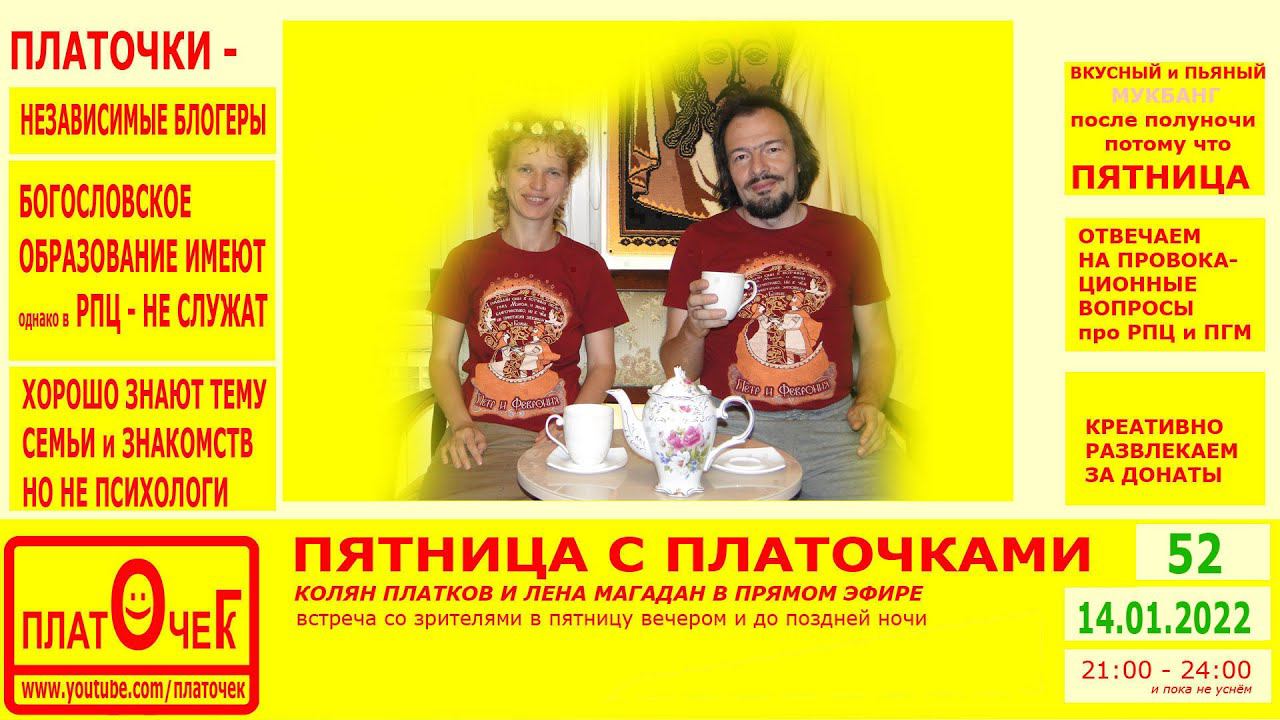 Говорим обо всём, расслабляемся, выполняем прикольные задания от зрителей за донат, отвечаем на провокационные вопросы про РПЦ и ПГМ (частное мнение светских людей с Богословским образованием) по теме "церковь и общество", "религия" и "религиозные заморочки". Весело проводим пятничный вечер. #Пятница #Мукбанг #блогеры #Православные Донат: https://donationalerts.com/r/platochekg Наш ВК: https://vk.com/kolyanplatkov Дзен: https://zen.yandex.ru/platochek Инста: https://instagram.com/platochegk ТикТок: https://www.tiktok.com/@platocheg
