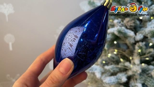 332120 Украшение елочное Капля с глянцевым покрытием синий 13см