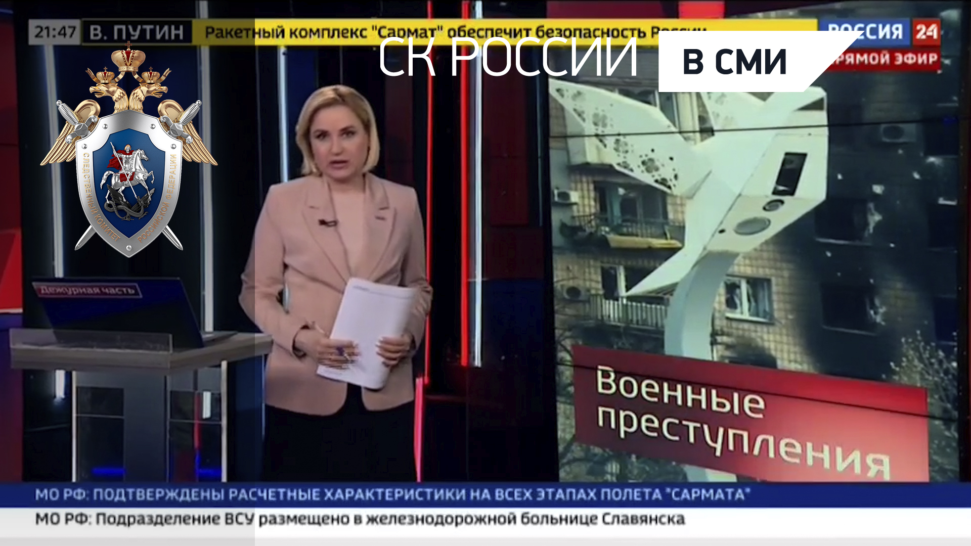 "Вести. Дежурная часть" канал Россия 24 - СКР расследует военные преступления ВС Украины в Донбассе