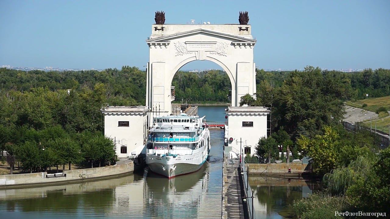 Пассажирский теплоход Русь Великая выходит из 1го шлюза ВДСК