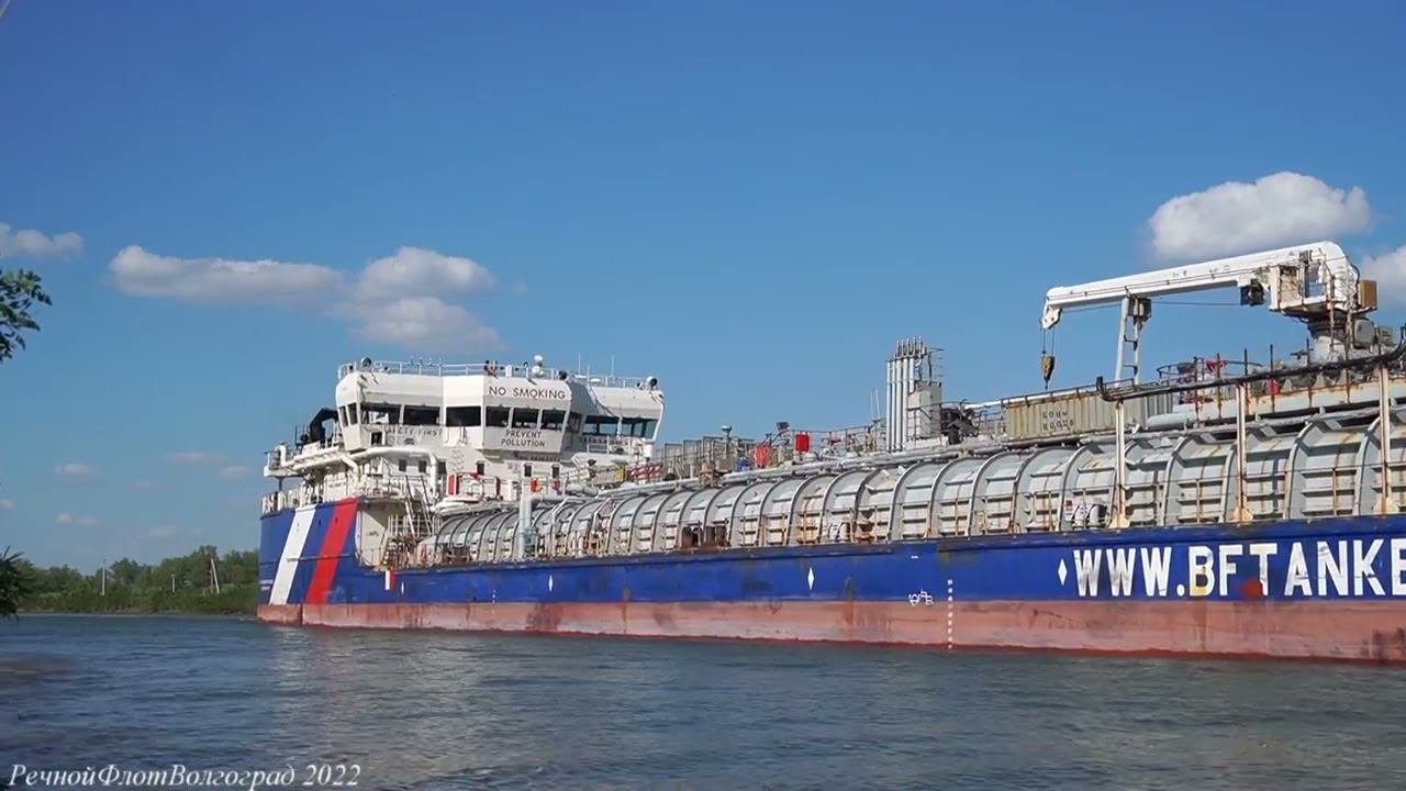 Танкер проходит по каналу поднимая ил со дна