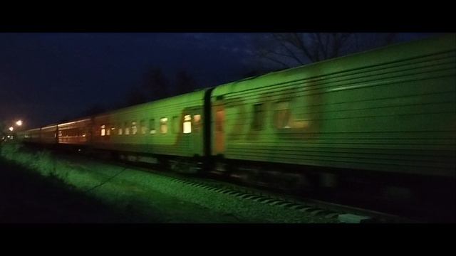 Пассажирский поезд, ведомый двумя ТЭП70,следует по 2гл.пути. СКЖД. 13•03•25г. 18:57.