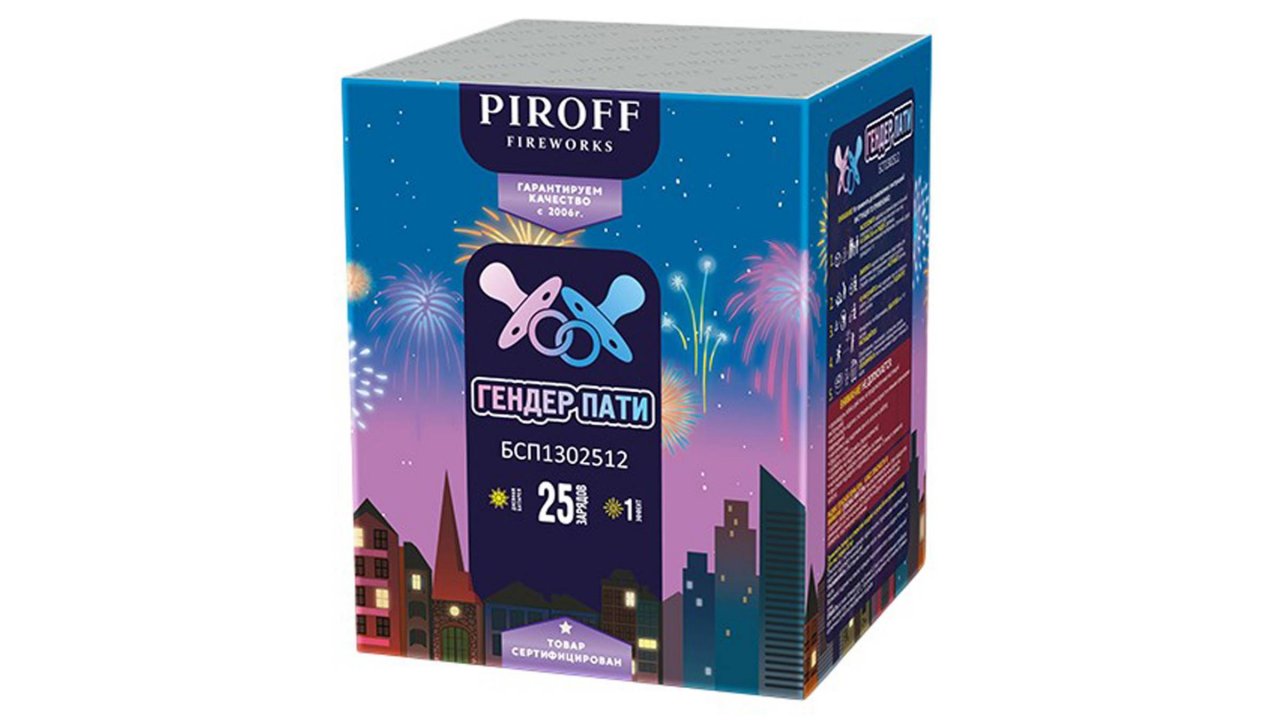 БСП1302512 Дневная батарея салютов "Гендер-пати" (1,25" х 25 залпов) "Piroff Fireworks"