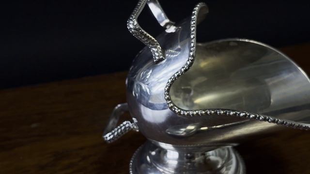 Совочек для сахара в форме ведёрка с носиком (Англия, 1-я половина XX века) Антикварный посеребрённый сосуд в форме миниатюрного ведёрка с изогнутым носиком и декором по краю в виде жемчужного бордюра. Тонкая гравировка растительного мотива придаёт предмету утончённость, а плавные линии корпуса делают его изящным и гармоничным элементом сервировки. Подобные сосуды, называемые sugar scuttle, были особенно популярны в Англии в конце XIX — первой половине XX века. Они служили для подачи сахара или специй и часто входили в состав чайных и кофейных наборов. Посеребрённые изделия отличались нарядностью и декоративной выразительностью, становясь маленькими символами английской гостеприимности и любви к ритуалам. Как использовать в интерьере: • Для подачи сахара или сладостей при сервировке чая • В качестве декоративного акцента в буфете или витрине • Как коллекционный предмет, отражающий традиции английского чайного этикета