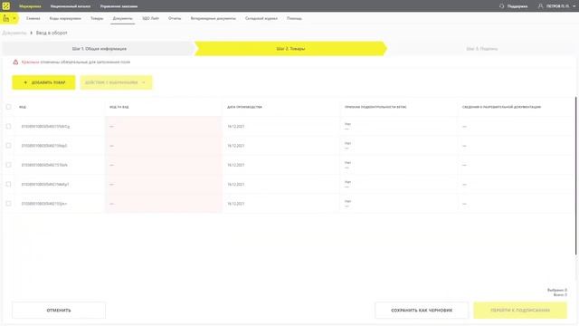 Ввод в оборот товаров Молочной продукции в Веб интерфейсе ГИС МТ