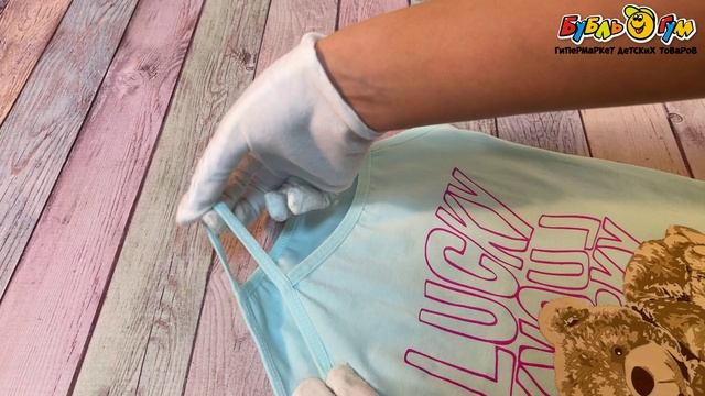 339220 Майка LUXXA с изображением медвежонка и надписью Lucky голубая