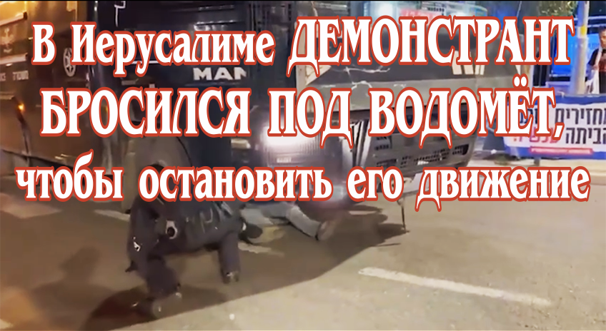 В Иерусалиме демонстрант бросился под водомёт, чтобы остановить его движение.