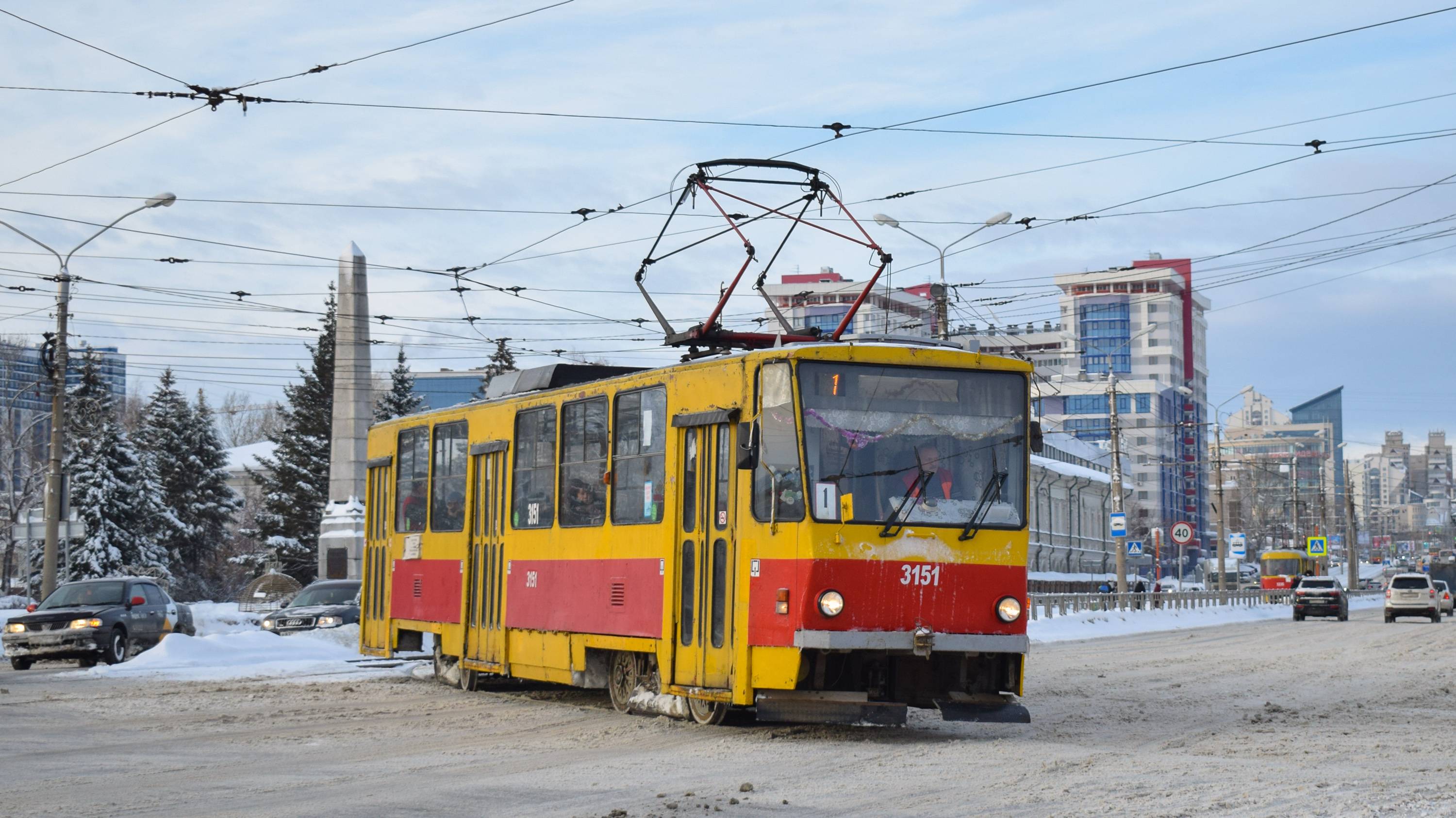Трамвай Tatra T6B5SU-3151. Покатушки по Барнаулу. Вид назад.