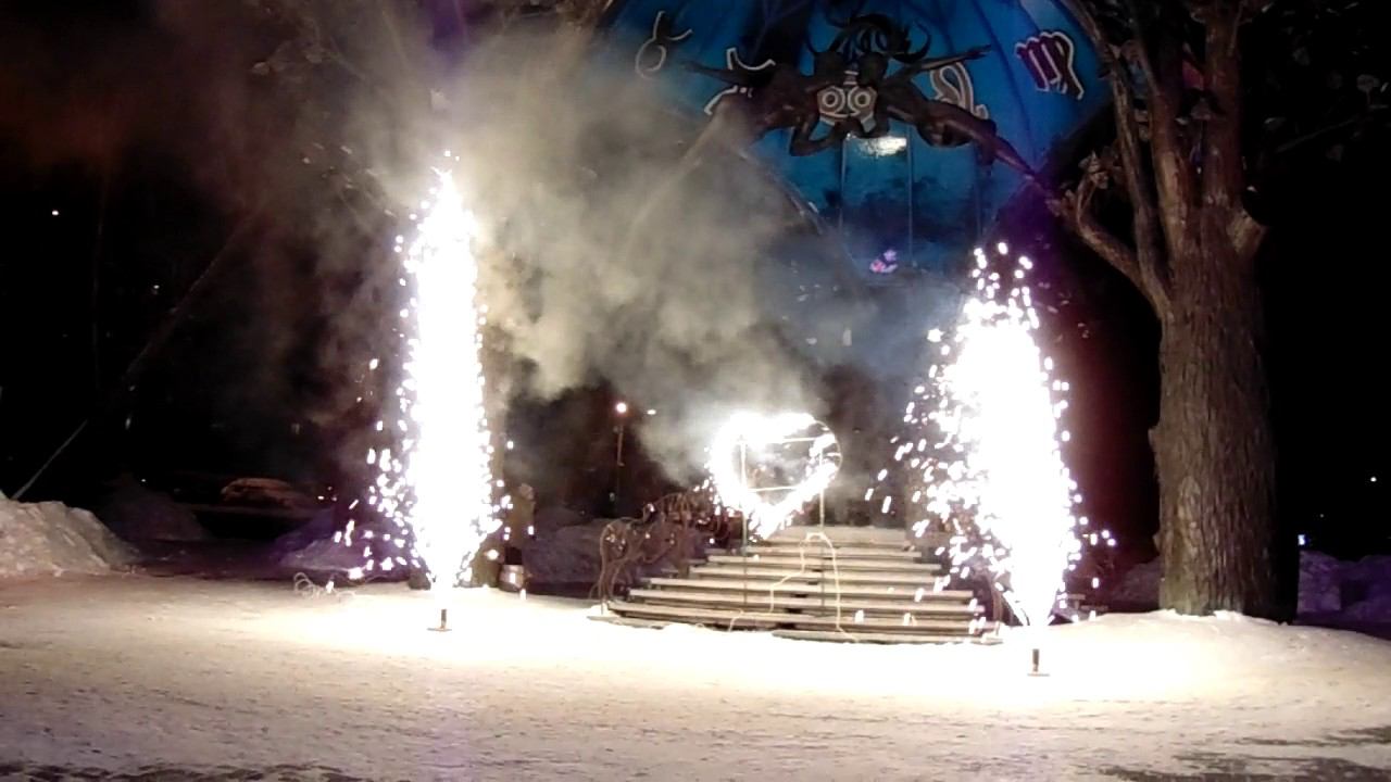 сердце, 2 фонтана + салют 49 залпов изумрудный город