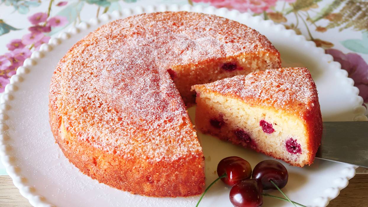 Ингредиенты: (стакан 200 мл) Мука 1 стакан Сахар 1 стакан Растительное масло 0,5 стакана Яйцо 2 шт Кефир 1 стакан Манная крупа 1 стакан Разрыхлитель 10 г Ванильный сахар 8 г Соль по вкусу Начинка: Вишня ~ 150-200 г Мука 1 ч.л Крахмал 1 ч.л Выпекать при 180 ° ~ 40-50 минут. Время выпечки и температура зависят от особенностей духовки