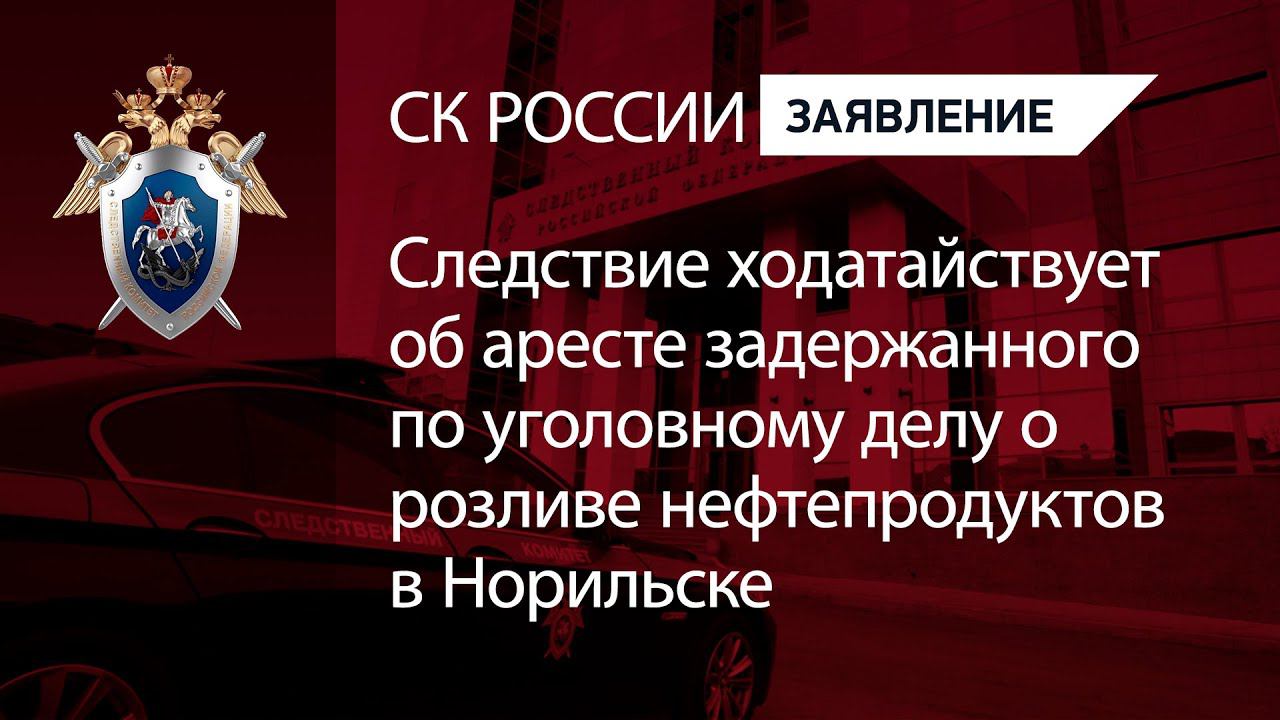 СК ходатайствует об аресте задержанного по уголовному делу о розливе нефтепродуктов в Норильске