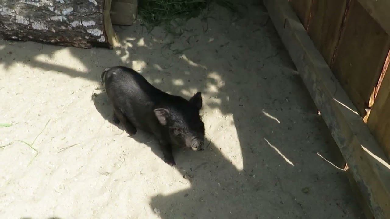В Малых Хрустах обитают камерунские козы, кролики и вьетнамские вислобрюхие свинки. В брюшке у вьетнамской свиньи находится габаритный пищеварительный аппарат, именно поэтому у них такие большие отвисшие животы. Взрослые особи могут вырастать до 130 килограммов. В деревянных ограждениях у Эльзы и Эммы сделаны прорези в виде сердечек. Если любопытный поросёнок просунул туда свой пятачок, значит, не прочь взять угощение из рук гостя. Здесь нет знаков, запрещающих кормить обитателей вольеров. Корм можно купить на месте. У свинки родился поросёнок Юра и она его отказалась кормить. Выкармливает и ухаживает за Юрой сотрудница зоопарка. Ему 10.05.2023 было 2 недели.