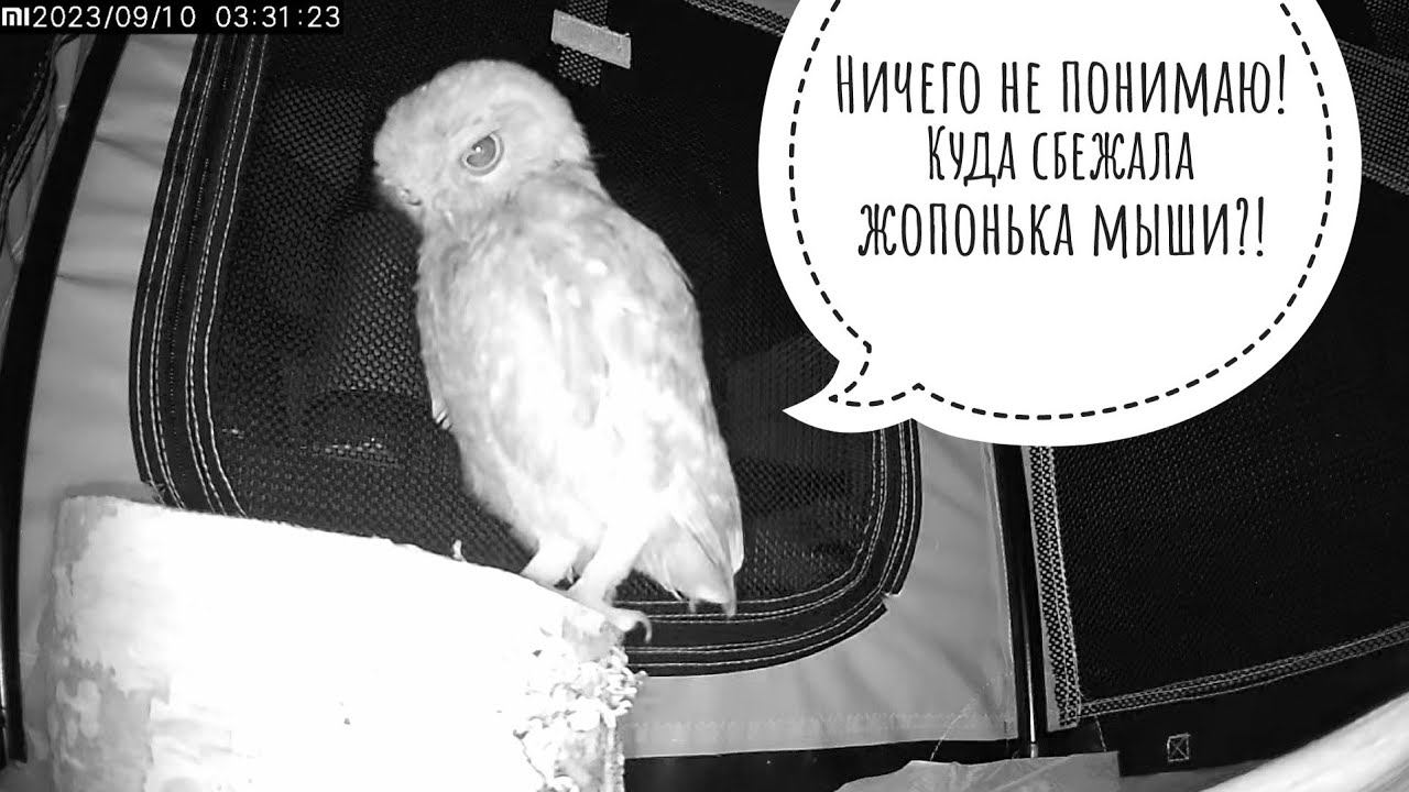 Маленький сыч ХЗ наводит суету с кусочком мыши. Поел, плюнул погадку, потерял кусочек - суетолог!