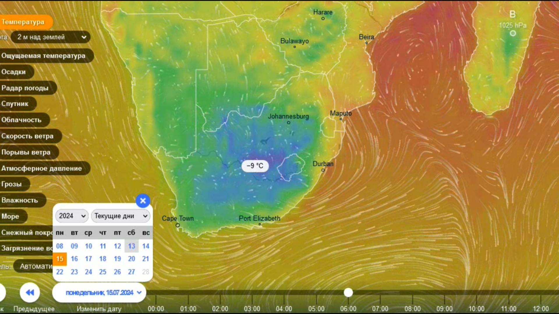 Ночные морозы в Южной Африке до -9 градусов 15 июля. В южном полушарии зима